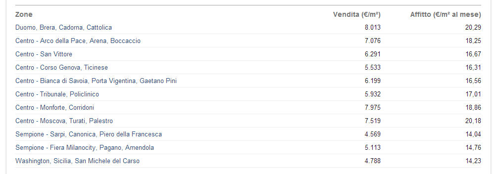 - Milano costi al metro quadro