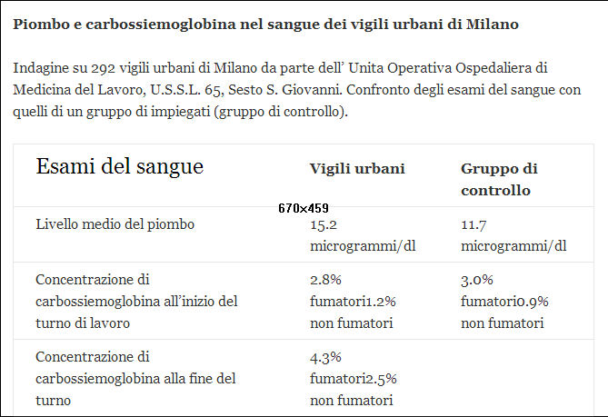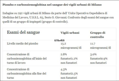 - Milano :Piombo e carbossiemoglobina nel sangue dei vigili urbani di Milano