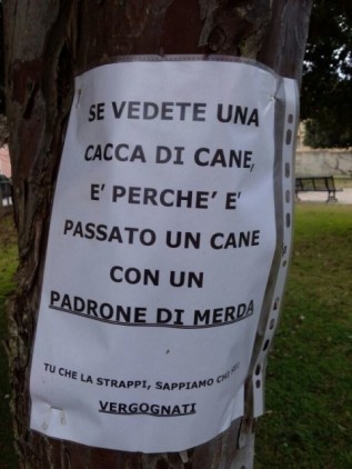 Sono daccordo sul fatto che esistono padroni(che brutto termine pero’) maleducati che lasciano le cacche a terra e che compromettono tutto il comportamento di persone educate come tantissimi possessori di animali. Basterebbe sanzionarli seriamente come succede all estero , mettere anche qualche cestino in piu’ e aree dedicate ai cani.