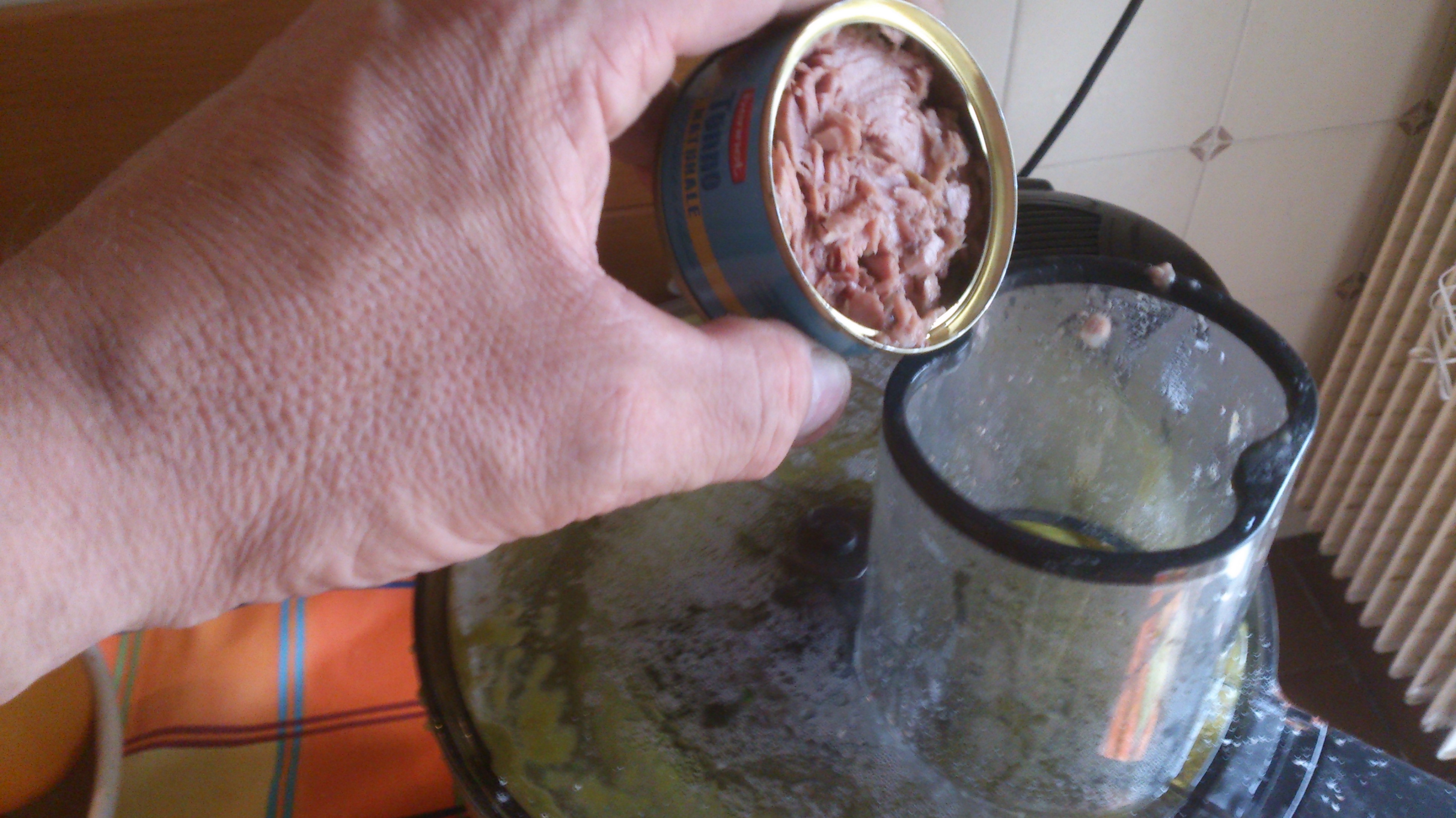 aggiungete l e uova e frullate e poi il tonno